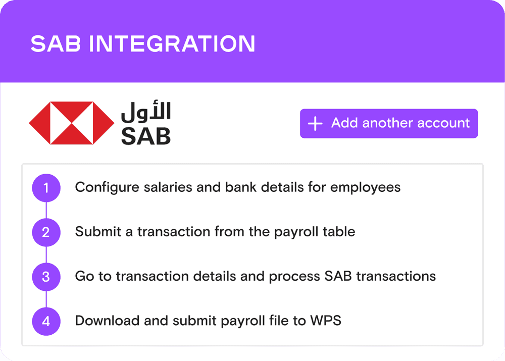 The integration with Saudi Awwal Bank (SAB) automates payroll processing for Bayzat users in Saudi Arabia. It streamlines salary payments and ensures compliance with labor laws by enabling direct transactions through SAB accounts, saving time and reducing manual efforts.